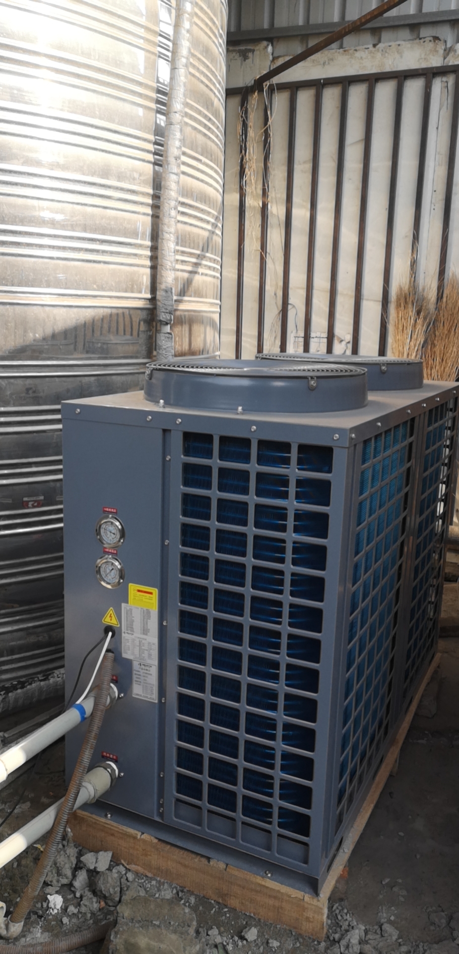 成都市青白江區清泉學校熱水工程,安裝1臺10匹空氣源熱泵熱水機組,每天為學生供應8噸生活熱水。
