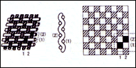 組織點(diǎn)中等,利于織物加密和增加強(qiáng)力剝離性能較差